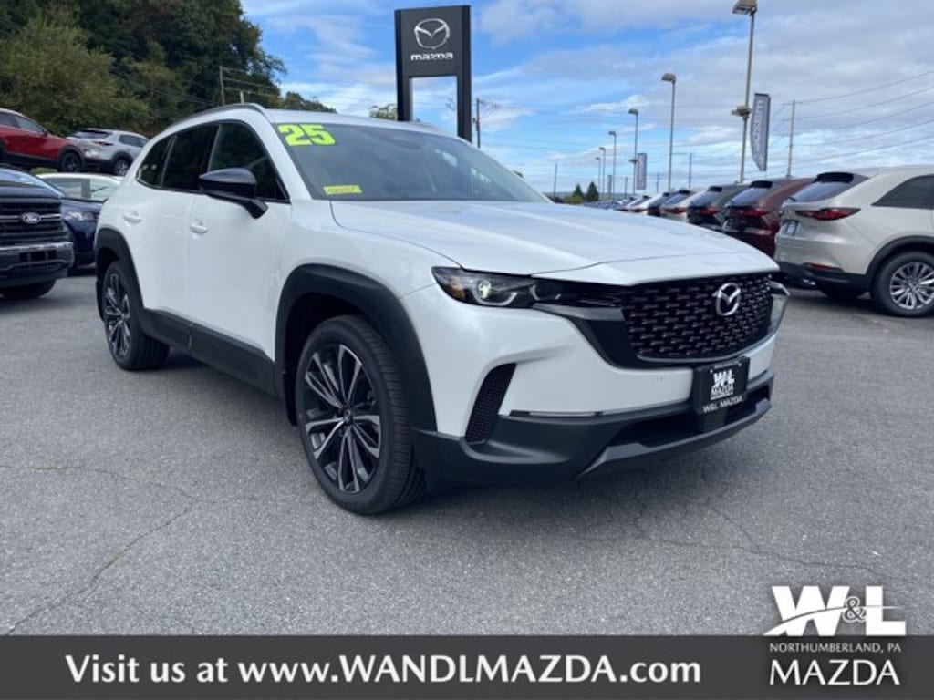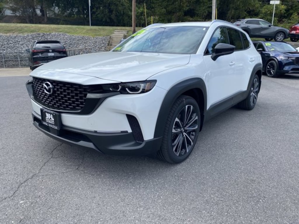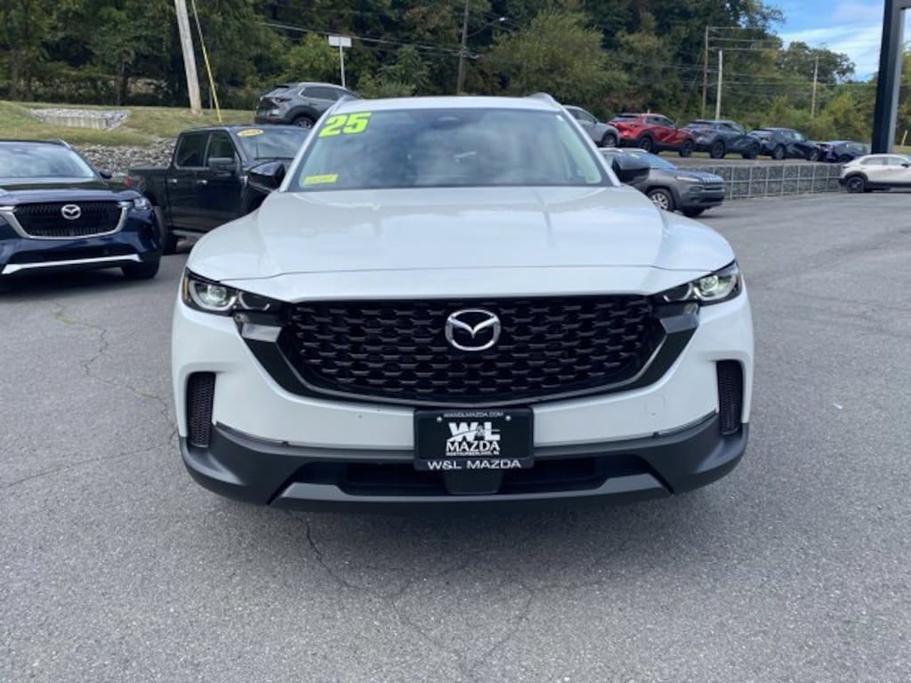 WIND CHILL PEARL PAINT CHARGE, WIND CHILL PEARL, WEATHER PACKAGE -inc: Cargo Liner w/Seatback Protection, All-Weather Floor Mats, Roadside Assistance Kit, FRONT & REAR SPLASH GUARDS, BLACK W/BROWN, LEATHER SEAT TRIM, BLACK LUG NUTS & BLACK WHEEL LOCKS, Valet Function, Trunk/Hatch Auto-Latch, Trip Computer, Torsion Beam Rear Suspension w/Coil Springs. This Mazda CX-50 has a dependable Regular Unleaded I-4 2.5 L/152 engine powering this Automatic transmission.