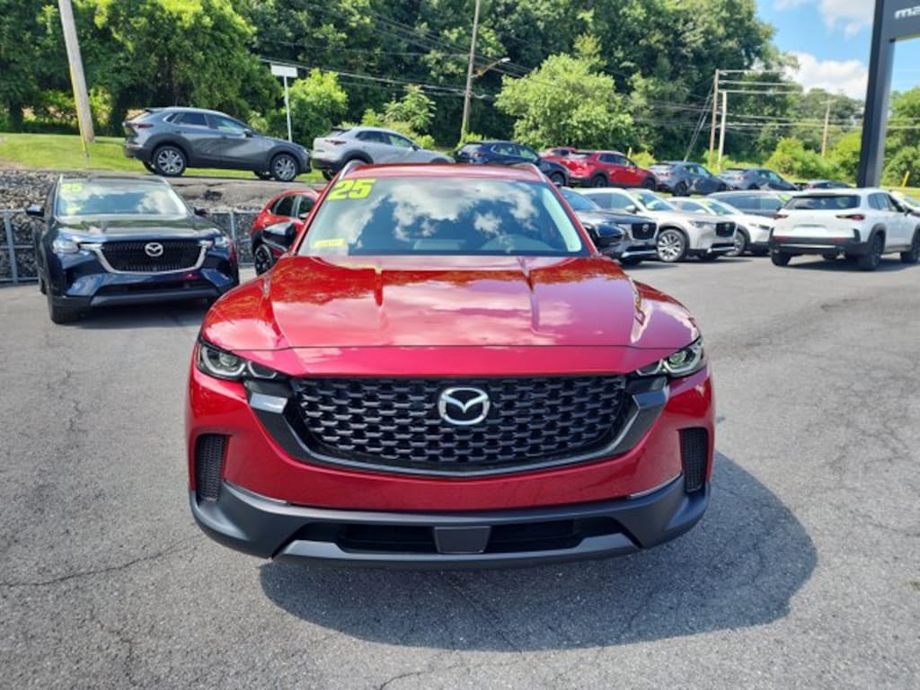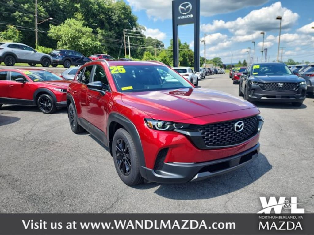 Valet Function, Trunk/Hatch Auto-Latch, Trip Computer, Torsion Beam Rear Suspension w/Coil Springs, Tire Specific Low Tire Pressure Warning, Tailgate/Rear Door Lock Included w/Power Door Locks, Strut Front Suspension w/Coil Springs, Steel Spare Wheel, Smart Brake Support (SBS) with Head-on Collision Mitigation, Side Impact Beams. This Mazda CX-50 has a dependable Regular Unleaded I-4 2.5 L/152 engine powering this Automatic transmission.