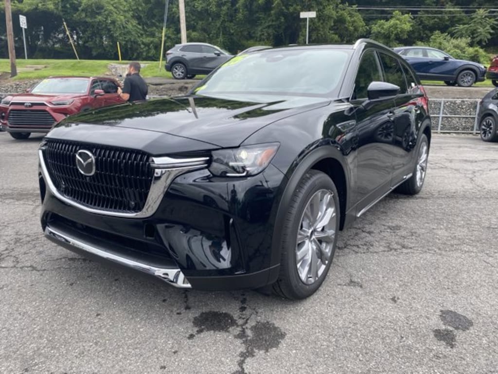 Window Grid Antenna, Wheels: 21 x 9.5J Aluminum Alloy -inc: silver metallic finish, Trunk/Hatch Auto-Latch, Trip Computer, Transmission: SKYACTIV Drive 8-Speed Automatic -inc: manual shift mode, paddle shifters and Mazda intelligent drive select (Mi-Drive): sports/off road/towing, Towing Equipment -inc: Trailer Sway Control, Tires: 275/45R21, Tire Specific Low Tire Pressure Warning, Tailgate/Rear Door Lock Included w/Power Door Locks, Steel Spare Wheel. This Mazda CX-90 has a powerful Intercooled Turbo Gas/Electric I-6 3.3 L/200 engine powering this Automatic transmission.
