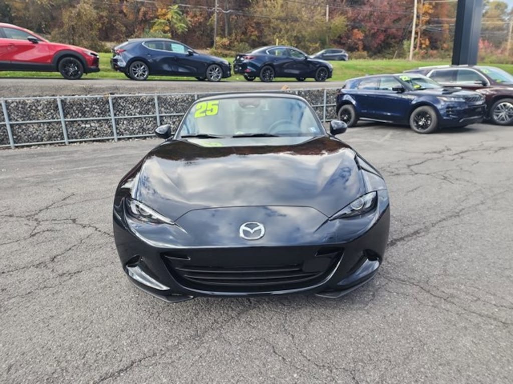 Wheels: 17 x 7 Aluminum Alloy w/Blk Met Finish -inc: machining cut, Trunk Rear Cargo Access, Trip Computer, Tires: 205/45R17 High-Performance Summer, Tire Mobility Kit, Sport Leather/Metal-Look Steering Wheel, Smart City Brake Support (SCBS), Single Stainless Steel Exhaust w/Chrome Tailpipe Finisher, Side Impact Beams, Seats w/Leatherette Back Material. This Mazda MX-5 Miata has a strong Premium Unleaded I-4 2.0 L/122 engine powering this Automatic transmission.