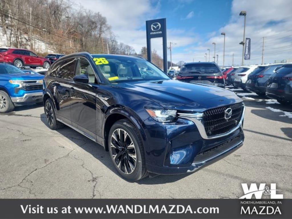 Wireless Phone Connectivity, Window Grid Antenna, Wheels: 21 x 9.5J Machine Cut Aluminum Alloy, Trunk/Hatch Auto-Latch, Trip Computer, Transmission: SKYACTIV Drive 8-Speed Automatic -inc: manual shift mode, paddle shifters and Mazda intelligent drive select (Mi-Drive): sports/off road/towing, Transmission w/Driver Selectable Mode, Tracker System, Towing Equipment -inc: Trailer Sway Control, Tires: 275/45R21. This Mazda CX-90 has a dependable Intercooled Turbo Gas/Electric I-6 3.3 L/200 engine powering this Automatic transmission.
