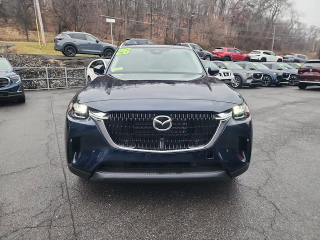 Wireless Phone Connectivity, Window Grid Antenna, Wheels: 21 x 9.5J Silver Metallic Aluminum Alloy, Trunk/Hatch Auto-Latch, Trip Computer, Transmission: SKYACTIV Drive 8-Speed Automatic -inc: manual shift mode, paddle shifters and Mazda intelligent drive select (Mi-Drive): sports/off road, Transmission w/Driver Selectable Mode, Tracker System, Towing Equipment -inc: Trailer Sway Control, Tires: 275/45R21. This Mazda CX-90 has a strong Intercooled Turbo Gas/Electric I-6 3.3 L/200 engine powering this Automatic transmission.